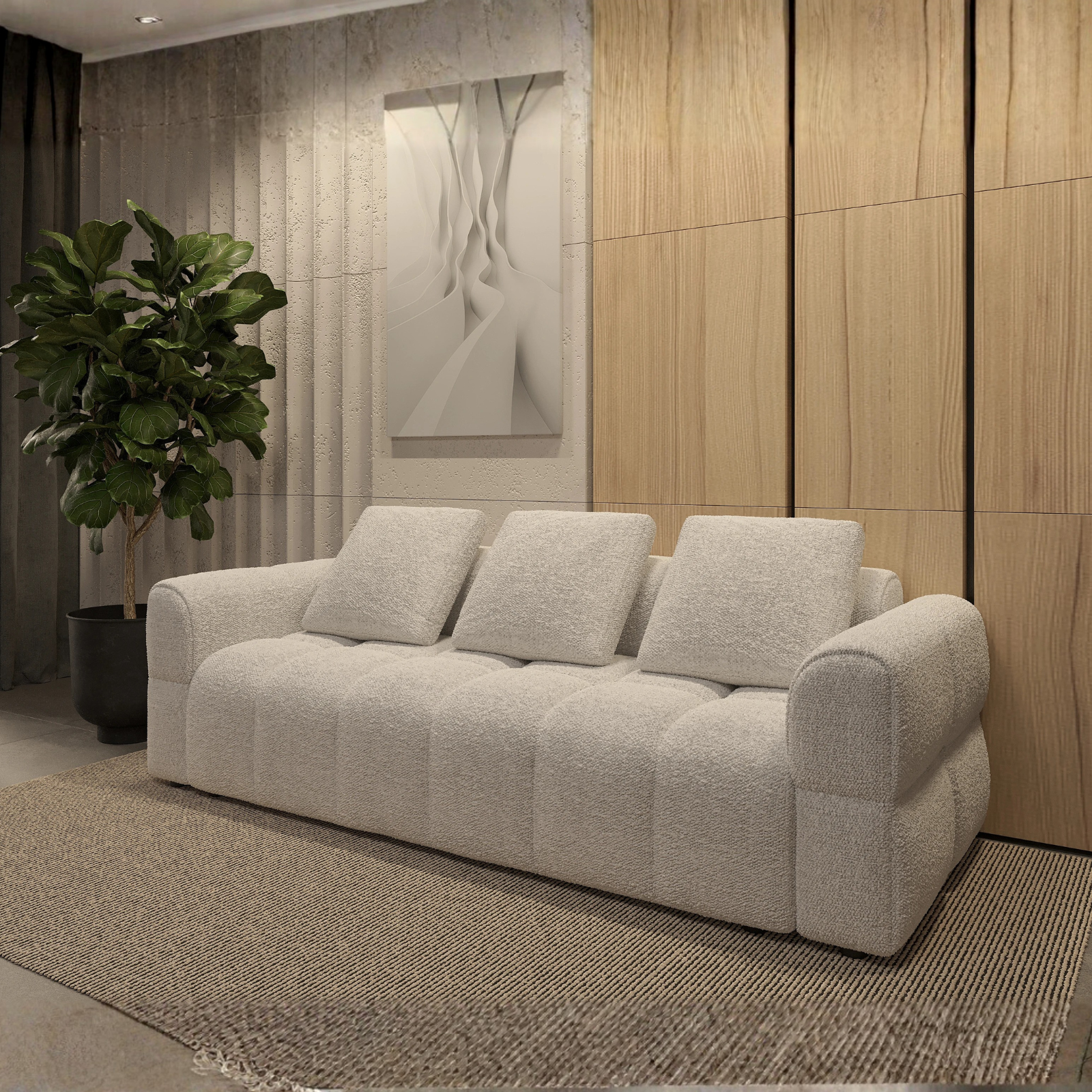 Transformă-ți livingul într-un spațiu elegant și primitor cu Canapeaua extensibilă Norman. Cu un design modern, linii curate și detalii minimaliste, această canapea adaugă un plus de rafinament oricărui decor interior. Sezutul generos, moale și confortabil este ideal pentru momentele de relaxare zilnică, oferind susținere optimă și un plus de confort datorită materialelor de calitate superioară.