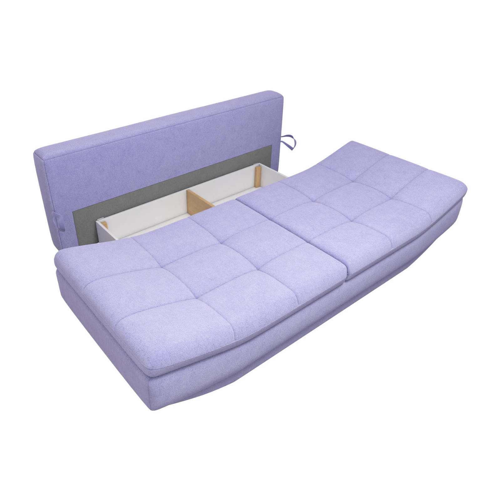 Canapea extensibilă Space, cu ladă de depozitare și saltea în componență pe bază de arcuri.
