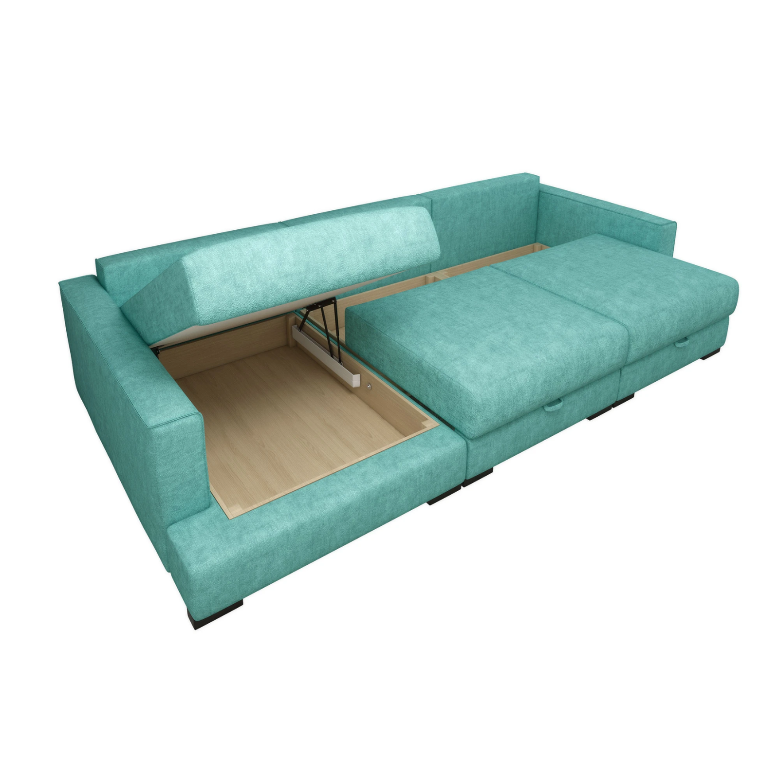 Colțar extensibil Fiji, cu spațiu de depozitare și saltea pe bază de arcuri și spumă cu memorie elastică, rezistentă în timp
