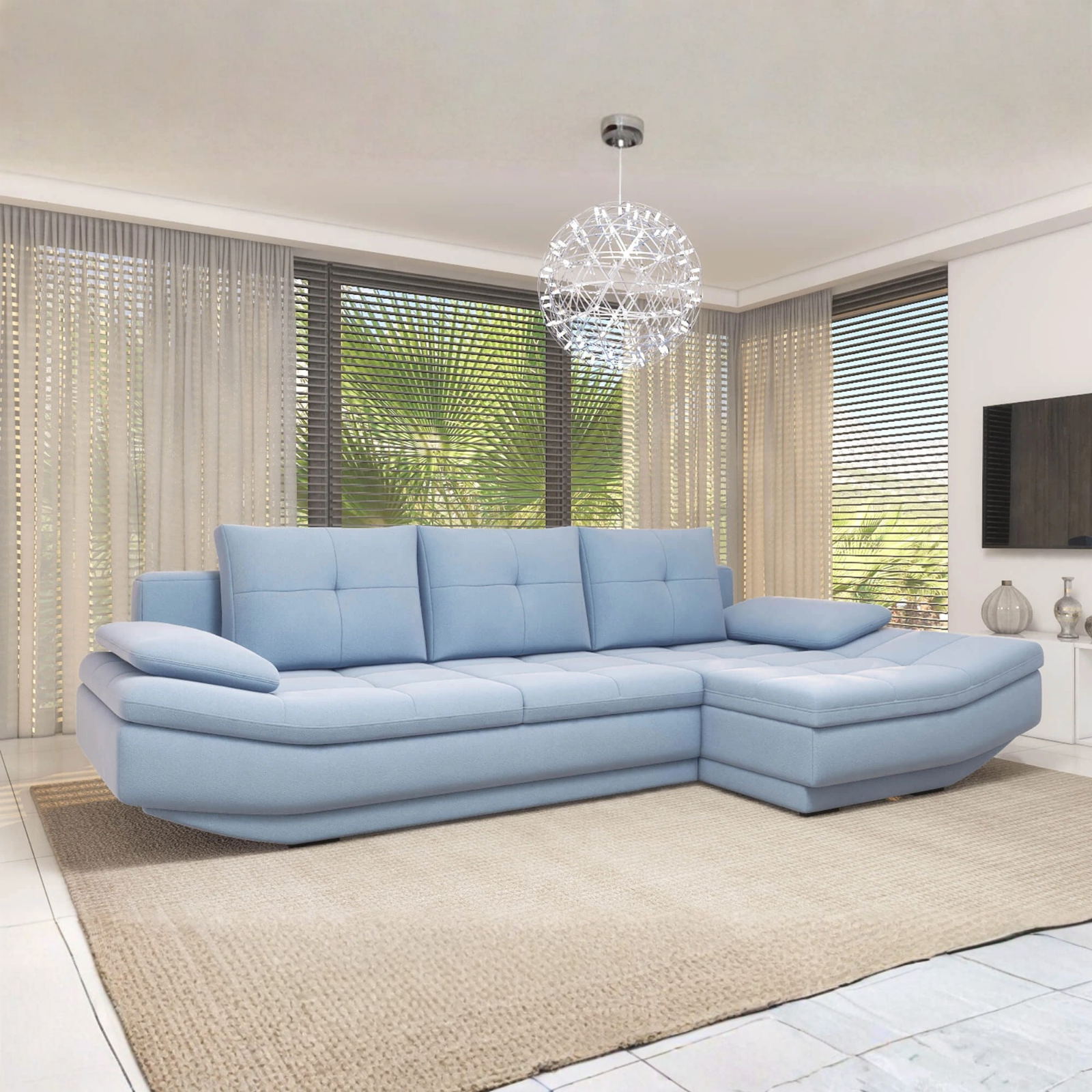 Colțarul extensibil Space, cu țesături fine și șezut confortabil oferă durabilitate și confort, având perne moi și un suport excelent. Designul său elegant și funcțional îl face ideal pentru orice tip de decor, aducând un plus de stil și flexibilitate locuinței tale.