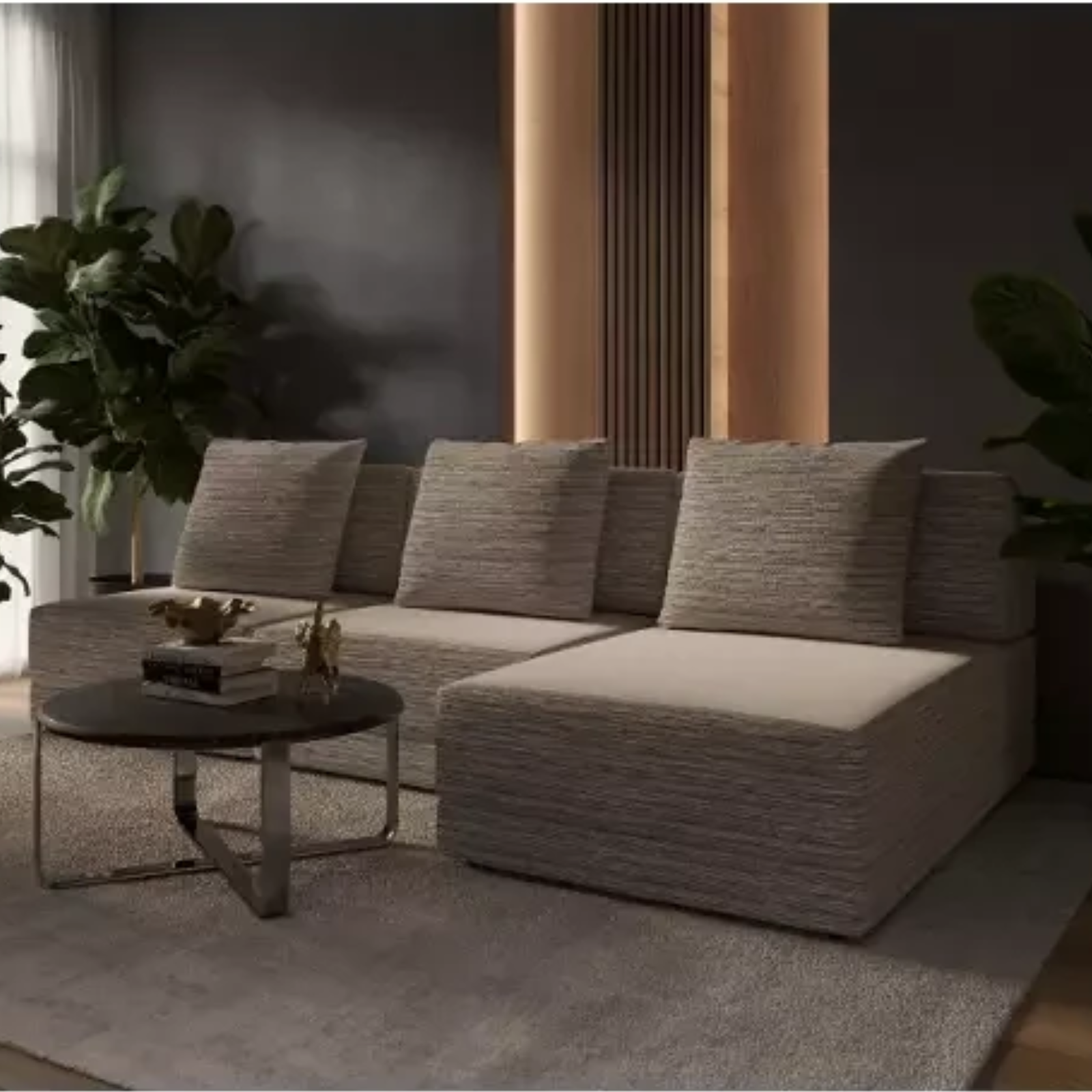 Colțarul Turin este o piesă de mobilier modernă, ideală pentru amenajarea unui spațiu confortabil și elegant. Prevăzut cu un șezut moale și confortabil, oferă relaxare optimă, fiind perfect pentru momentele de odihnă. Designul său fără brațe permite o integrare ușoară în orice tip de interior, maximizând spațiul disponibil. Ideal atât pentru living, cât și pentru zonele de relaxare, colțarul Turin combină funcționalitatea cu un stil minimalist rafinat.