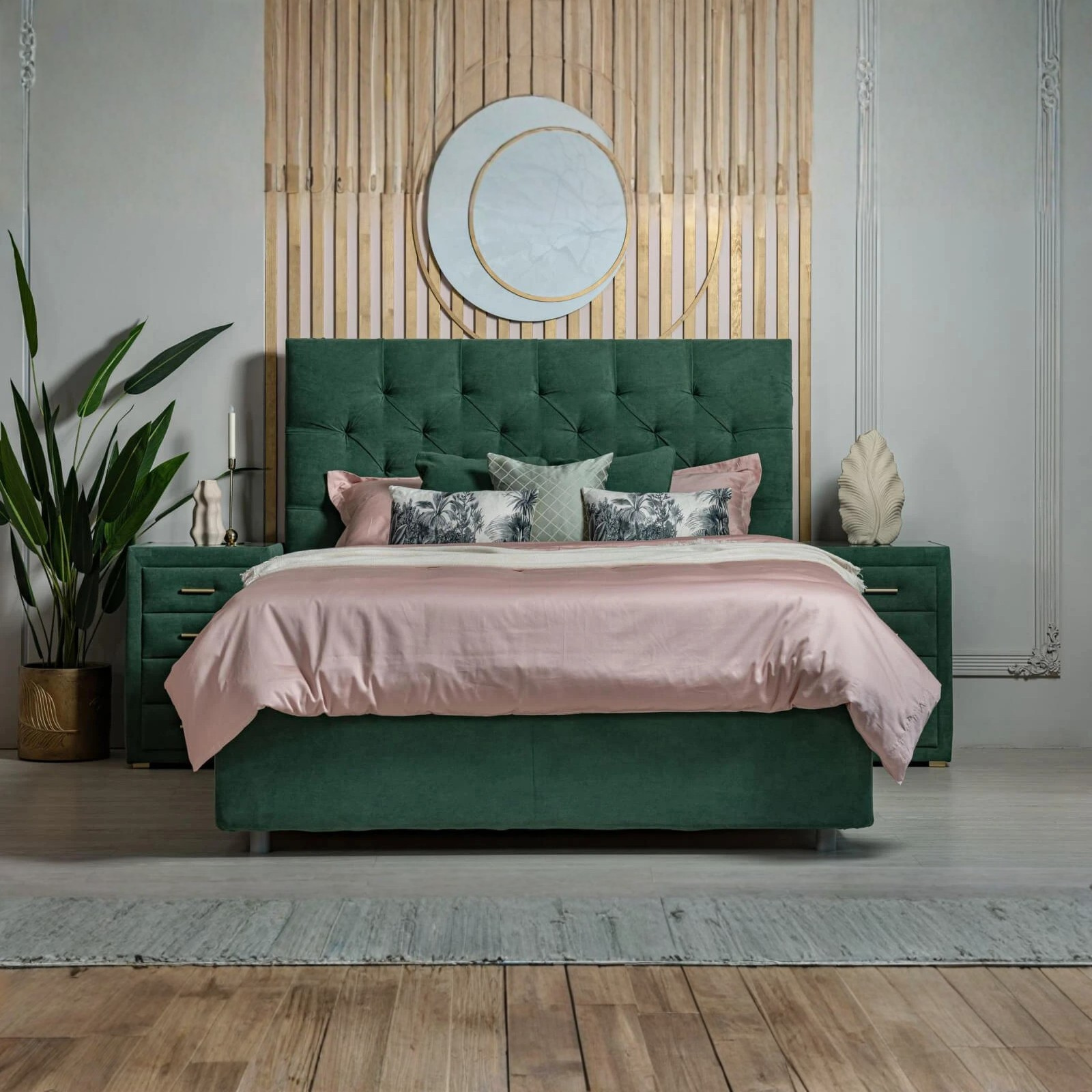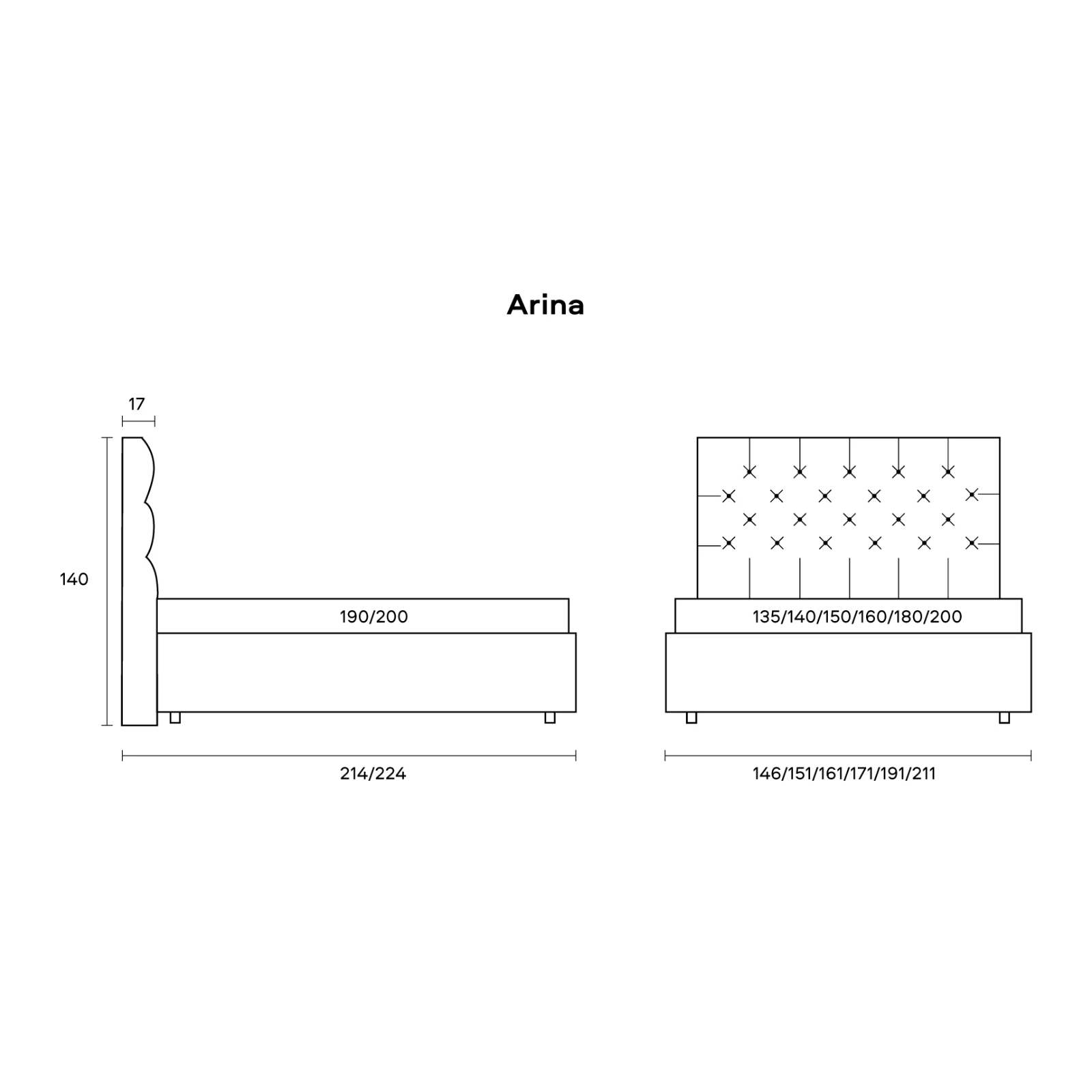 Designul clasic și liniile simetrice conferă patului Arina un aspect nobil. O tăblie moale, voluminoasă și colțurile ușor rotunjite vor accentua stilul patului.