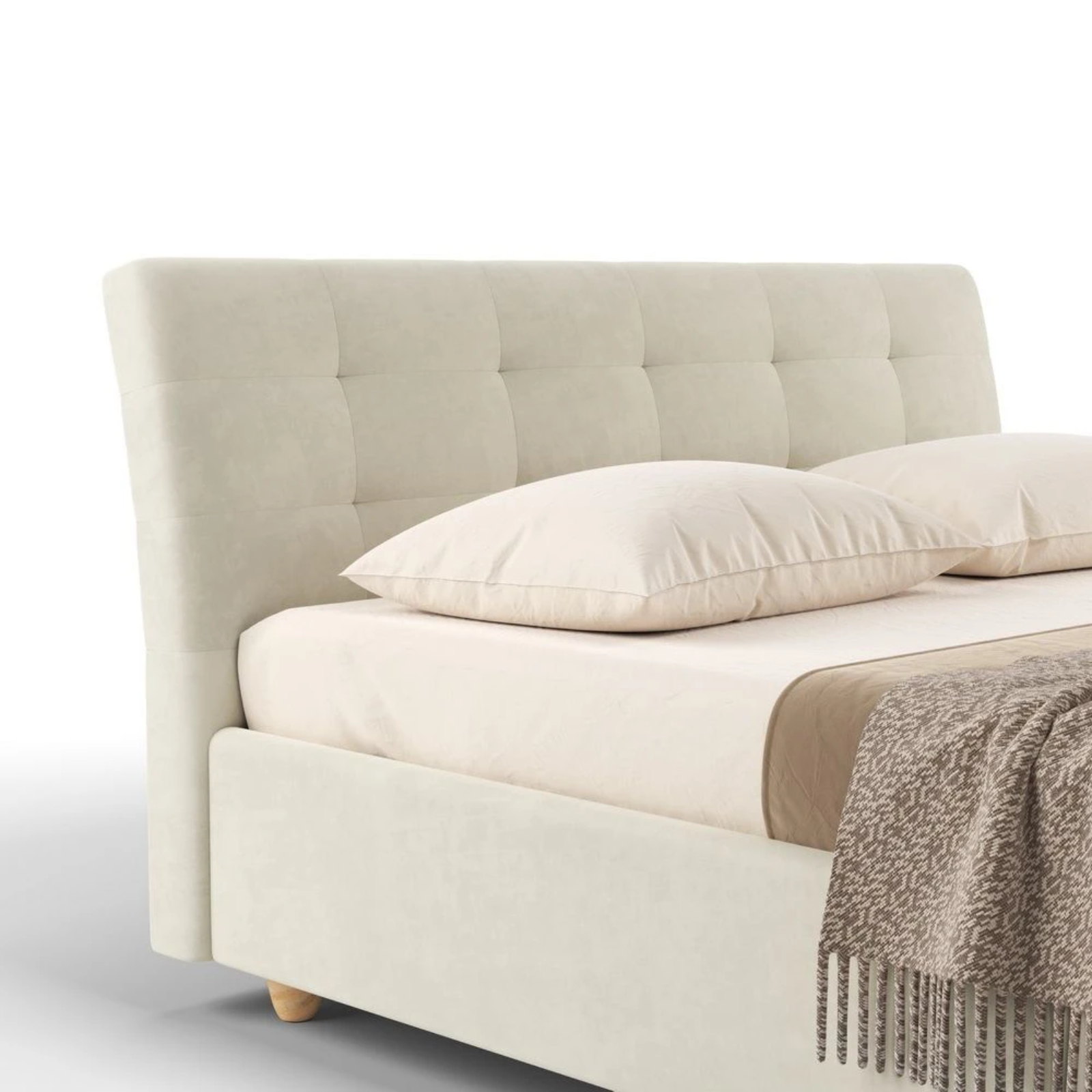 - Patul vine cu picioare standard Chrome de 5/8/10 cm (cilindrice din metal argintiu). Alte optiuni sunt contra cost.