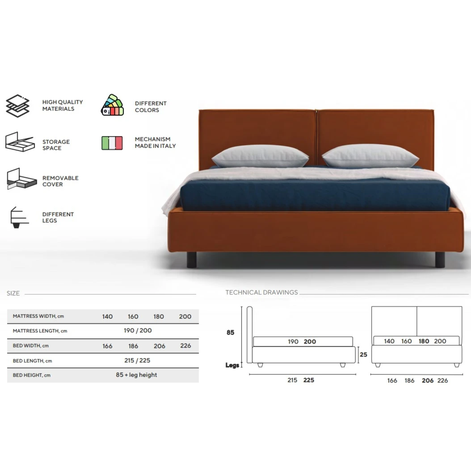 • Patul vine cu picioare standard Chrome de 5/8/10 cm (cilindrice din metal argintiu). Alte opțiuni sunt contra cost.