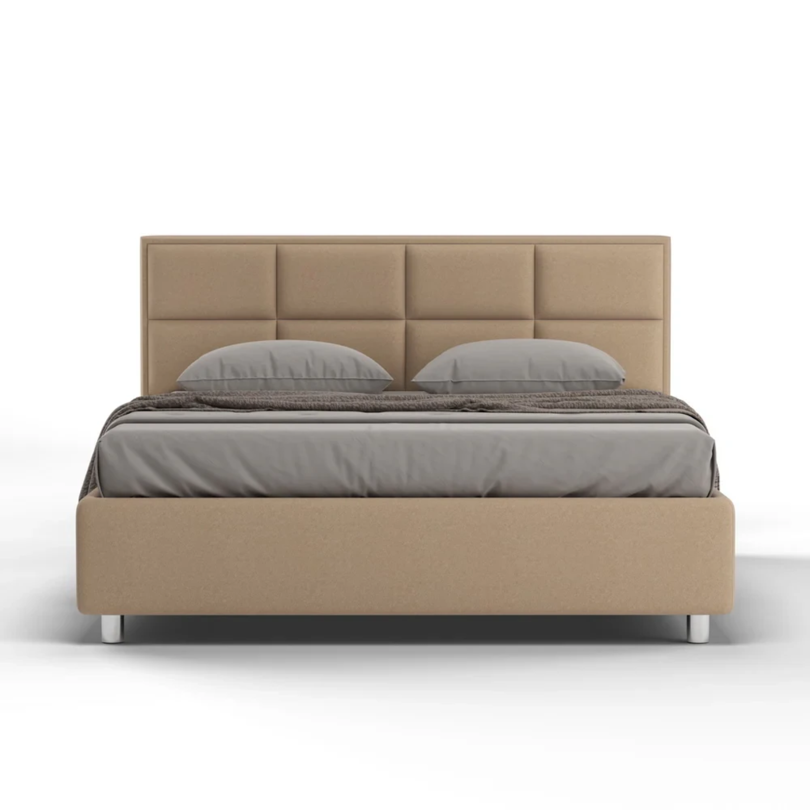 Patul Sienna este caracterizat de un design modern și elegant, având o tăblie cu linii drepte și fine. Tăblia conferă un aspect minimalist, iar liniile curate adaugă un aer sofisticat și contemporan. Fabricat din materiale de calitate, acest pat se integrează perfect într-un decor modern, fiind atât confortabil, cât și estetic plăcut.