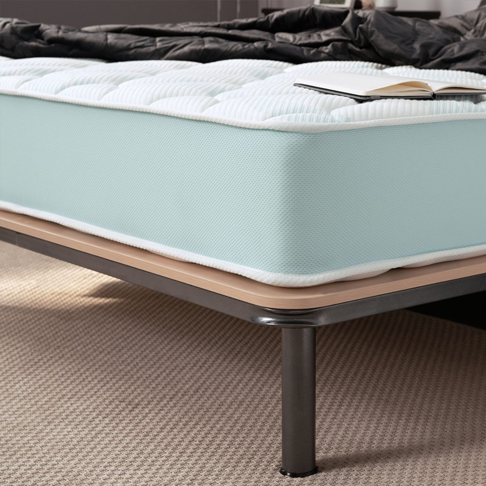 ✔ Perimetru întărit cu spumă poliuretanică REBOUND – stabilitate excelentă pe margini și rezistență în timp.